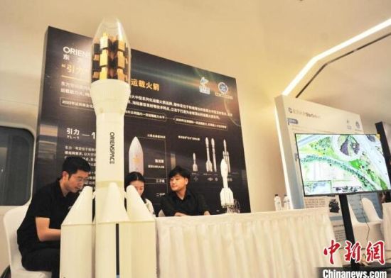 6月19日,第三屆遙感·通信創(chuàng)新大會在吉林長春開幕。圖為參展商展示的火箭模型!