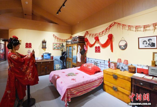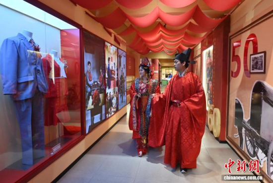 11月7日,偽滿皇宮博物院主辦的《天配良緣——近現(xiàn)代婚戀婚俗實(shí)物展》于長(zhǎng)春開(kāi)幕。展覽通過(guò)婚書(shū)、嫁妝等300余件民間實(shí)物,帶領(lǐng)參觀者沉浸式感受不同年代的婚禮婚俗。現(xiàn)場(chǎng)通過(guò)漢服走秀、嗩吶演奏等演出,展現(xiàn)傳統(tǒng)婚儀魅力。中新社記者 張瑤 攝