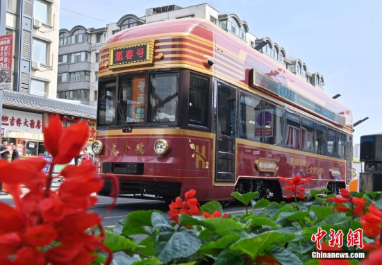 6月4日,吉林長(zhǎng)春,市民在氫能源文旅專列旁拍照。該專列由中車(chē)長(zhǎng)客研制,以歷史文化街區(qū)新民大街建筑群為設(shè)計(jì)靈感,車(chē)內(nèi)君子蘭花海主題內(nèi)飾與復(fù)古留聲機(jī)相映成趣。列車(chē)采用三級(jí)安全防護(hù)氫能系統(tǒng),單次加氫續(xù)航320公里。中新社記者 張瑤 攝