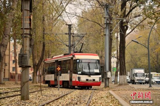 11月5日,吉林長(zhǎng)春秋意正濃,一處軌道兩旁的樹(shù)葉泛黃,有軌電車宛如在畫(huà)中穿行。中新社記者 張瑤 攝